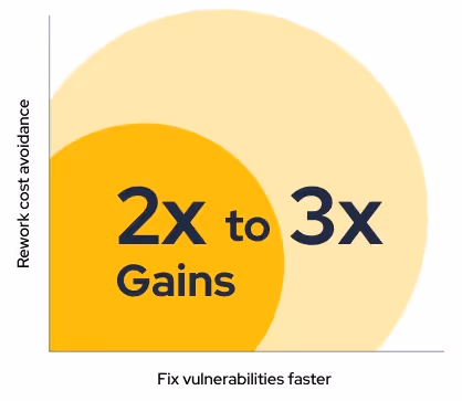 Organizations that adopt an agile approach for secure code learning see 2x to 3x business impact from two levers: the ability to fix vulnerabilities faster and rework cost avoidance.