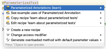 For example, for the @Parameterized annotation, I might want to link to the official documentation and a set of online example code.